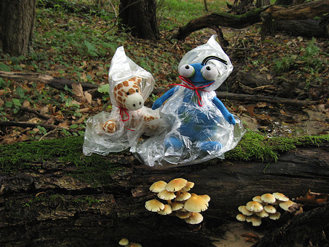 Grünblättrige Schwefelköpfe - Hypholoma fasciculare Die beiden waren mit ihrer Ausbeute sehr zufrieden. Dann ging es bei besserem Wetter