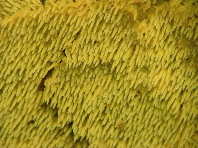 Hallo Michael und Maren Ich habe meinen Pilz nun mikroskopiert und in div. Büchern nachgeschlagen. Wie Maren schon sagte, handelt es sich um Mycoacia uda/Wachsgelber Fadenstachelpilz.