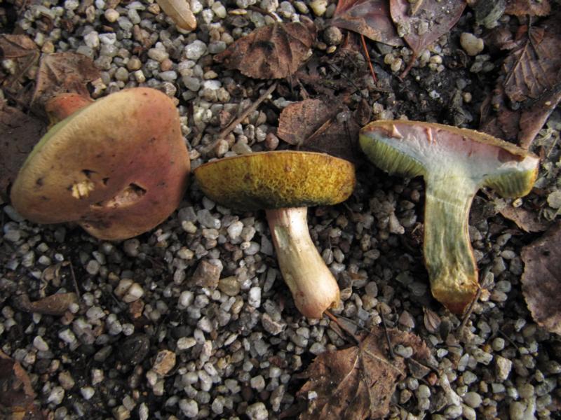 Charakteristisch finde ich ja die bunten Farben im Fleisch des Hutes. Außerdem erkennt man die Längsgruben auf dem Stiel, wie sie Nordeloos beschreibt ( http://www.entoloma.nl/html/xerocomusge.html ). Auch die leuchtenden, zur Hutoberseite kontrastierenden Poren sehe ich gegeben. Darüber hinaus ist mir aufgefallen, dass sie oft einen ziemlich gedrungenen Wuchs aufweisen, so dass sie vom Habitus an kleine Stadt-Champignons (Agaricus bitorquis) erinnern. Auch insgesamt besitzen sie einen recht dicken Stiel. (Scheint bei dem Fund von Werners Freund allerdings nicht so richtig zuzutreffen.)