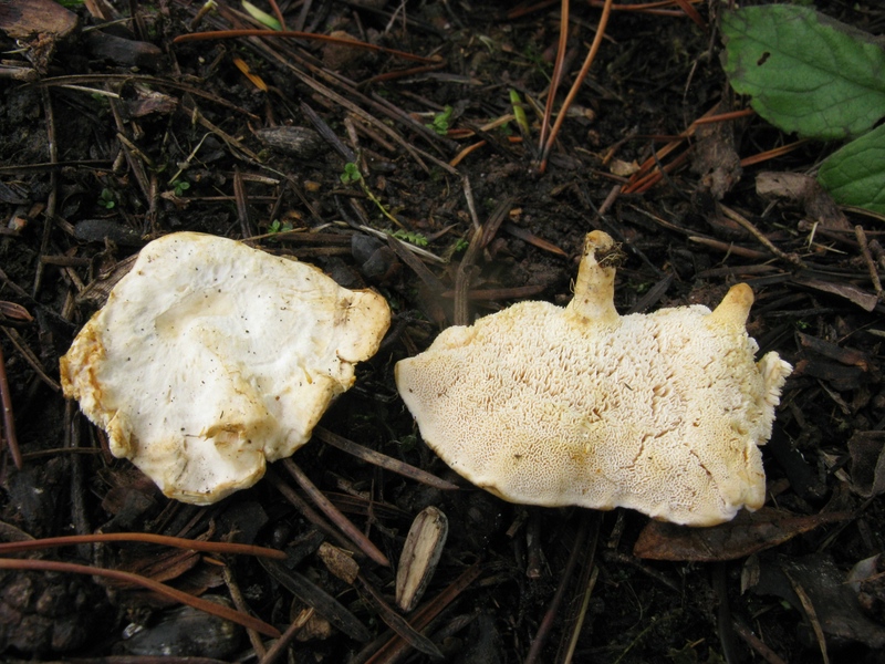 Hallo allerseits, Werner E. hat es erraten, es ist der Kreiselförmige (Zusammenfließende, Gestielte) Schütterzahn (Zahnling), Sistotrema confluens. Dieser ist hier zwar zusammenfließend und gestielt, aber kaum kreiselförmig, und das Hymenium entspricht mehr dem wissenschaftlichen Gattungsnamen (Sistotrema = Reibeisen) als dem deutschen.