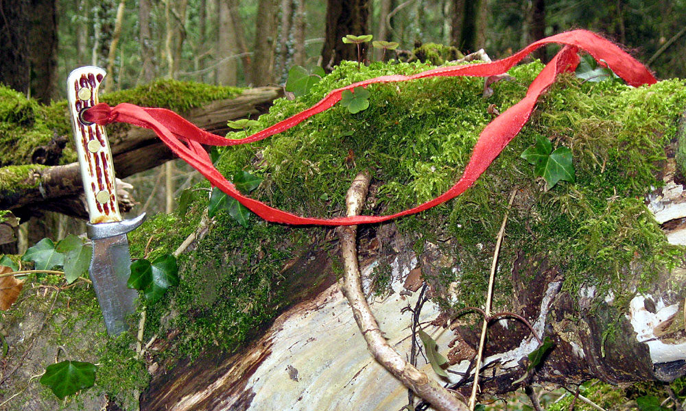 mein Pilzmesser habe ich vor über 25 Jahren einmal irgendwo in der "Botanik" der Alpen nur mit großem Glück wieder gefunden. Seitdem ist es immer mit einem 50 cm langen roten Band ausgestattet, das mir bei Bedarf verlässlich den "letzten bekannten Einsatzort" signalisiert.