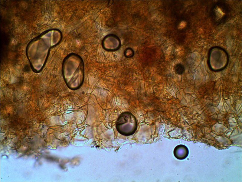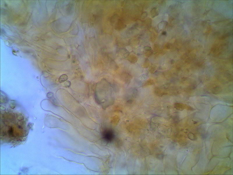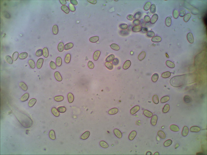 : Da die elliptischen Sporen für Mythiomyces aber zu klein sind, ich habe nur 5 - 6 x 3 - 3,5 µm gemessen und die Cheilos nicht so dicke und bauchige mit Metuloiden sondern eher schlanke, längliche ohne Kristallschoof bin ich nun bei Stagnicola perplex gelandet. Auch super! Ich sagte noch: "alles was ich hier noch nicht kenne, sind seltene Pilze. Es dürften davon nur sehr wenige Fundmeldungen geben.