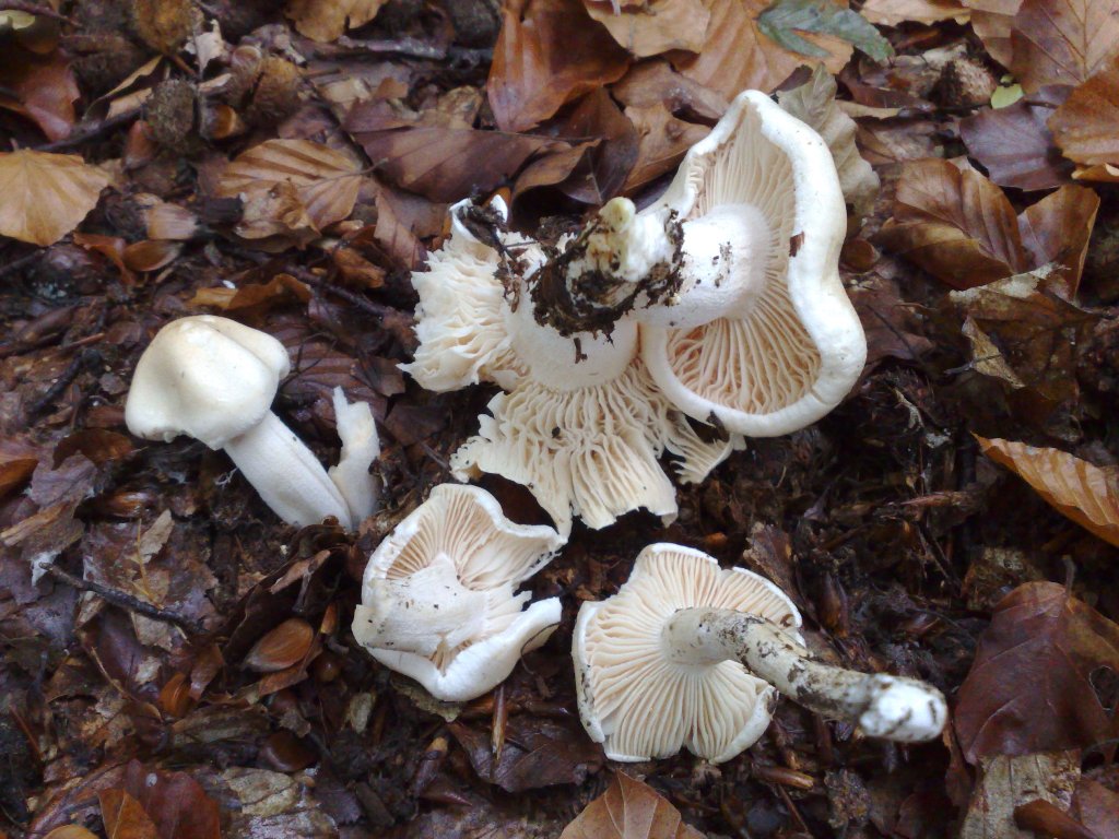 Hallo Zusammen, habe, wie auch schon im Jahr zuvor, an der gleichen Stelle diese Kandidaten gefunden und kann sie nach wie vor nicht bestimmen. Vielleicht hat jemand ne Idee? Ich vermute eine Tricholoma, aber das ist reine Spekulation. Wäre für jeden Hinweis dankbar. Beschreibung: Hut: bis 8cm, weiß bis cremefarben und felderig aufreißend, Hutrand leicht eingerollt Lamellen: weiß bis creme und leicht ausgebuchtet, zum Teil wellig Stiel: wie der Hut gefärbt und zum Teil ab der Mitte zur Basis hin korkenzieherartig verdreht Sporenpulver: weiß Geruch: frisch geruchlos, beim eintrocknen angenehm, aber unspezifisch Standort: Buchenwald Viele Grüße Michael