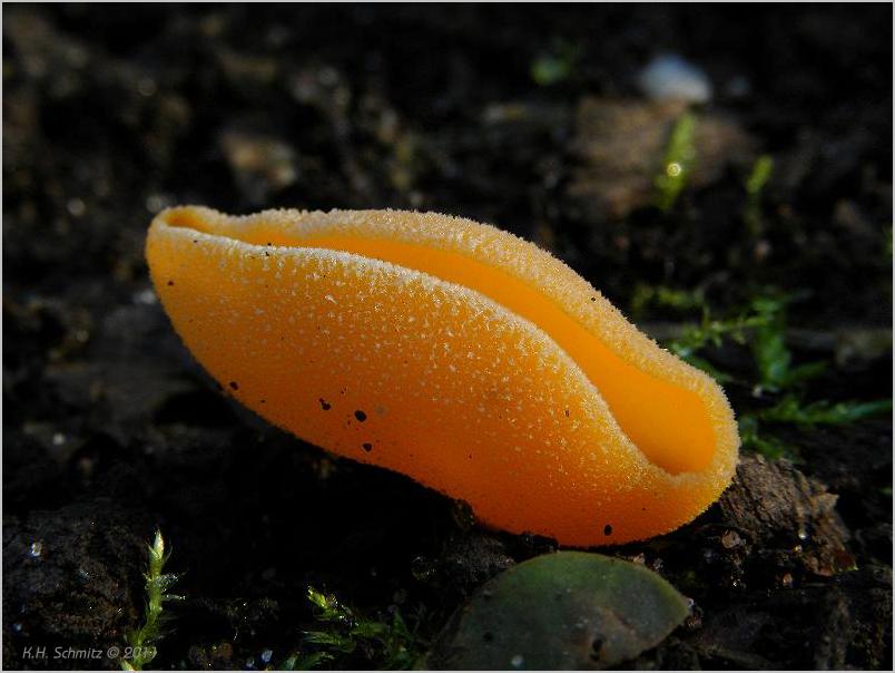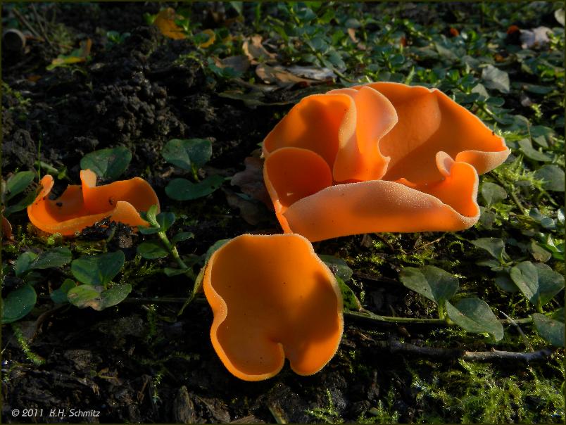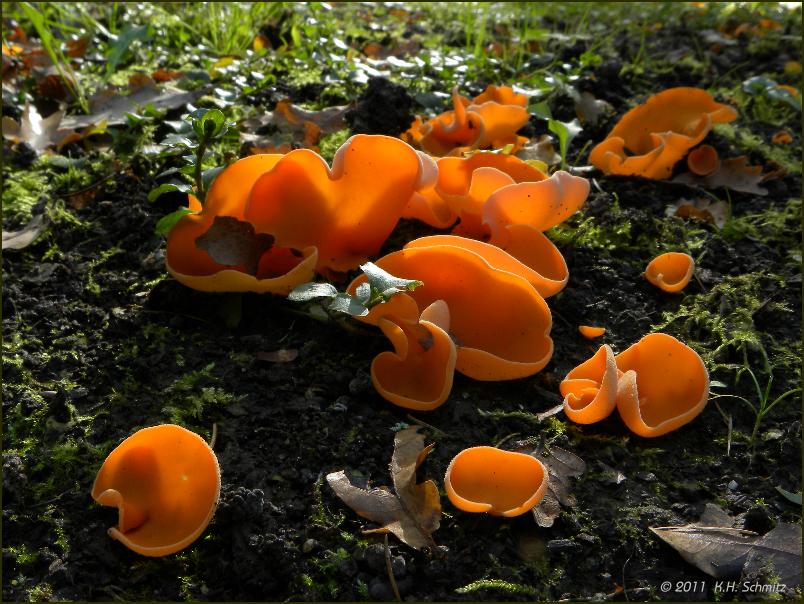 habe ich da heute gefunden. Guten Abend liebe Pilzfreunde, der Orangebecherling, Aleuria aurantia (habe ihn aber nicht gegessen).