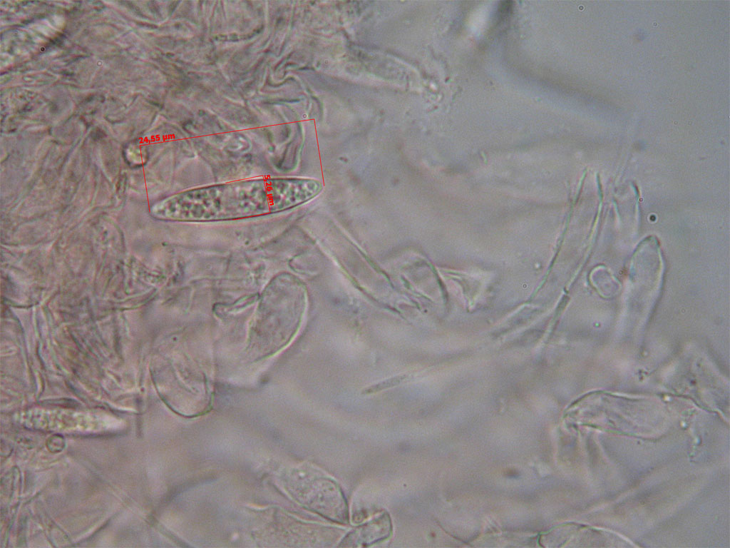 Hallo Uschi, das war wohl der richtige Tipp! Die zähe Konsistenz der Frk. und eine schnelle Messung einer Spore, sowie Aussehen der Sporen, die dünnen Paraphysen weisen wohl zu Ascocoryne cylichnium.