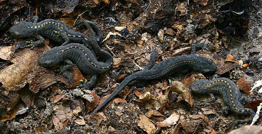 ca. 4m langen Stamm umdrehte, konnte ich darunter eine Unmenge von diesen 'Molchen'