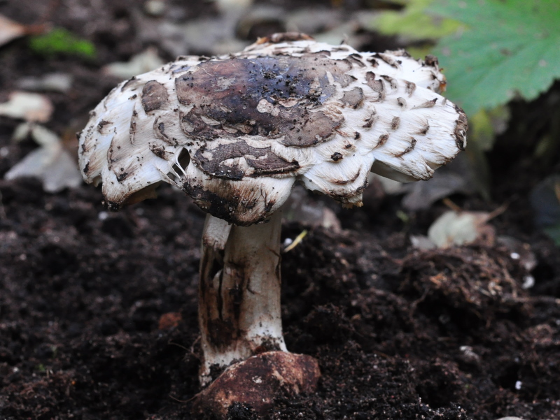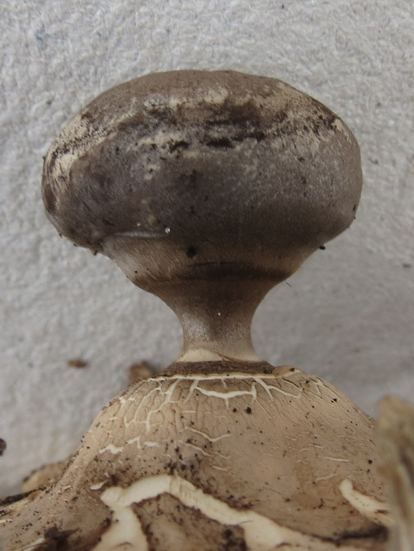 Auf dem Rückweg zum Auto entdeckte ich diesen seltsam aussehenden Schirmling mit einer außergewöhnlich großen Knolle. Mein Freund bestimmte ihn zuhause mit Gift-Riesenschirmling (Macrolepiota venenata). Wiederrum für uns beide ein persönlicher Erstfund.