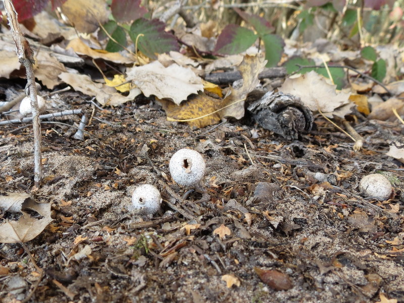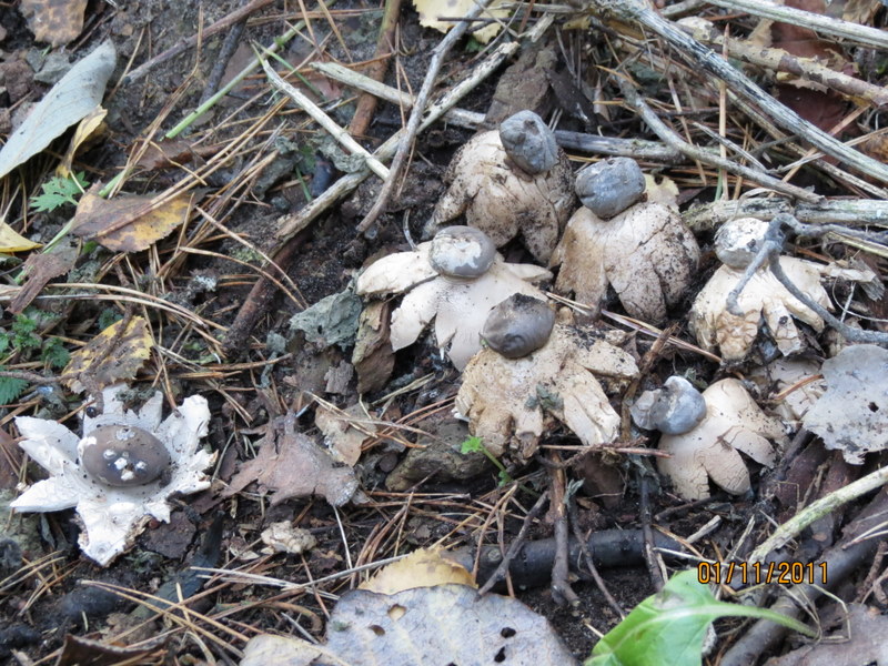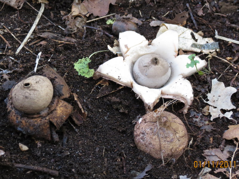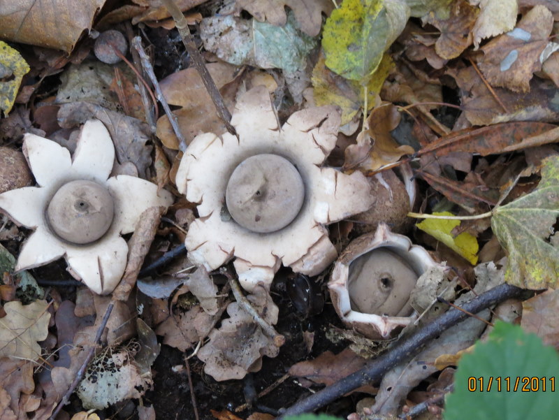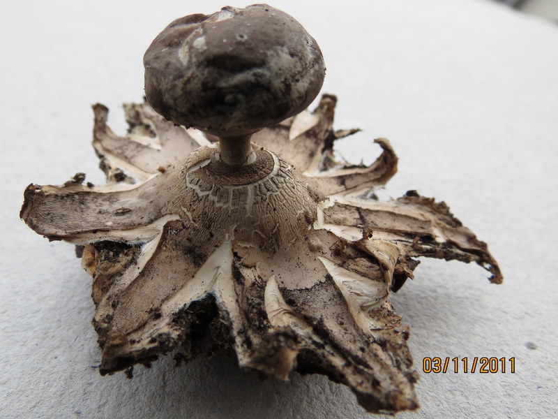 Direkt neben dem Schirmling dann noch diese Erdsterne :-), die ich beinahe zertreten hätte. Dunkle Erdsterne (Geastrum coronatum) steht jetzt in unseren Listen der Erstfunde. Diese habe ich mit dem Buch von Heinrich Dörfelt bestimmt und hoffe das das Ergebnis richtig ist.