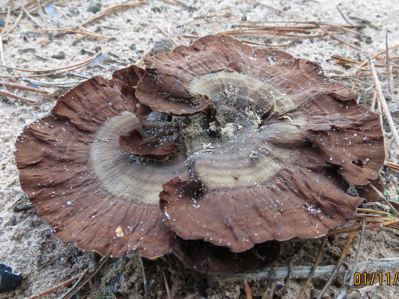 Auf der knochentrockenen Düne war anfänglich kaum was pilzliches zu entdecken. Der Sand war auch stellenweise stark durchfurcht von schweren breitreifigen Fahrzeugen. Wegen diverser Hinweisschilder vermute ich, das hier die Bundeswehr kürzlich zu Gange war.