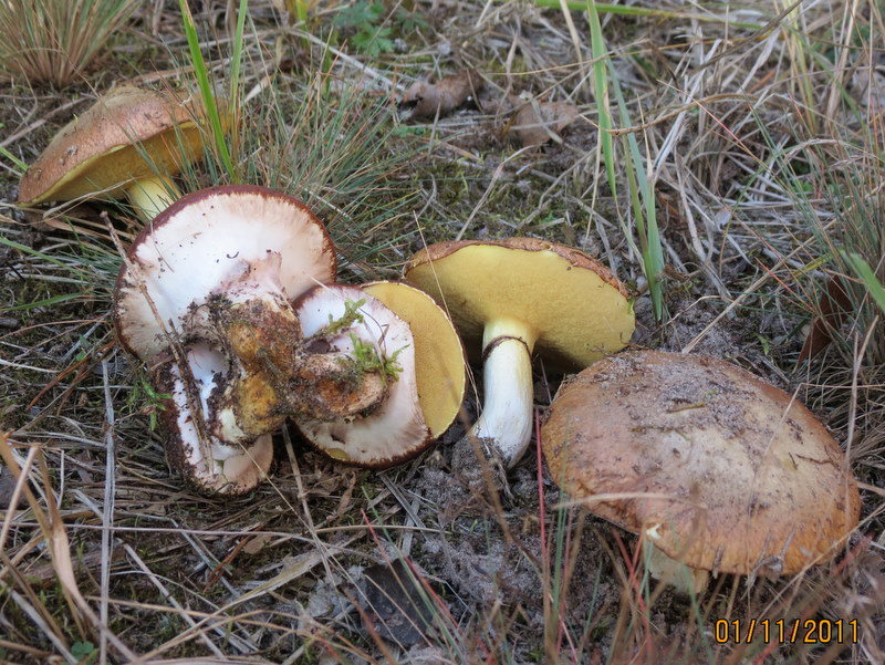 In den anschließenden Kiefernwälder prachtvolle Butterpilze (Suillus luteus) in großer Zahl