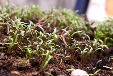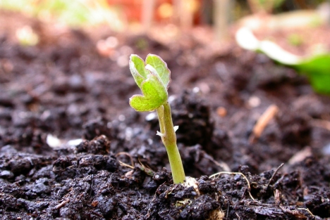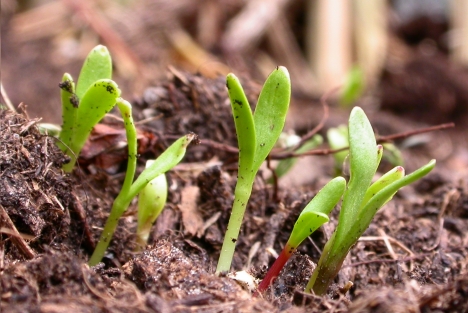 Von der Kapuienerkresse sind Samen aufgegangen.