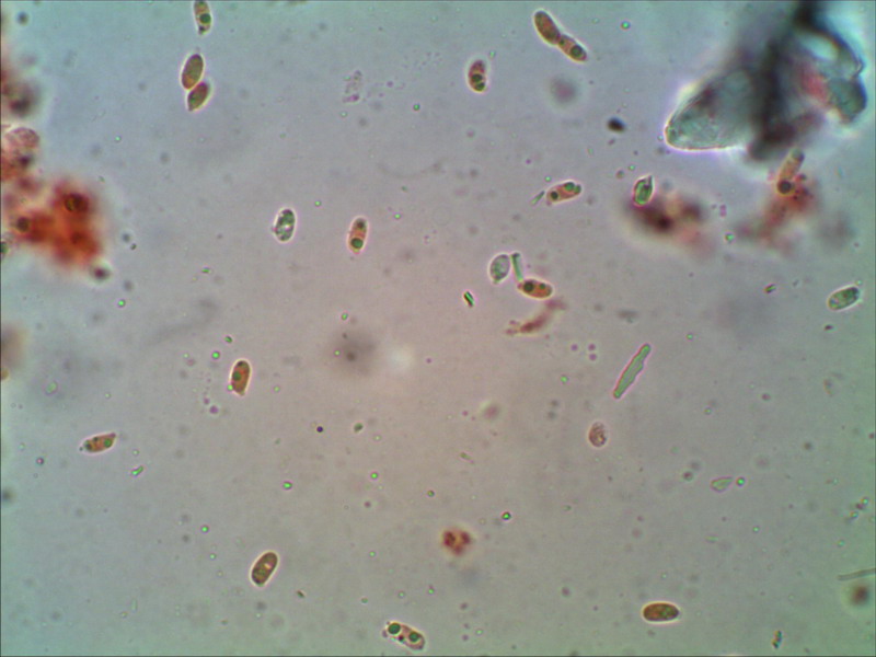 : den ersten halte ich für rickenella mellea Leider sind die Sporen zu klein. 4.6-5.0-5.7 x 2.0-2.2-2.6