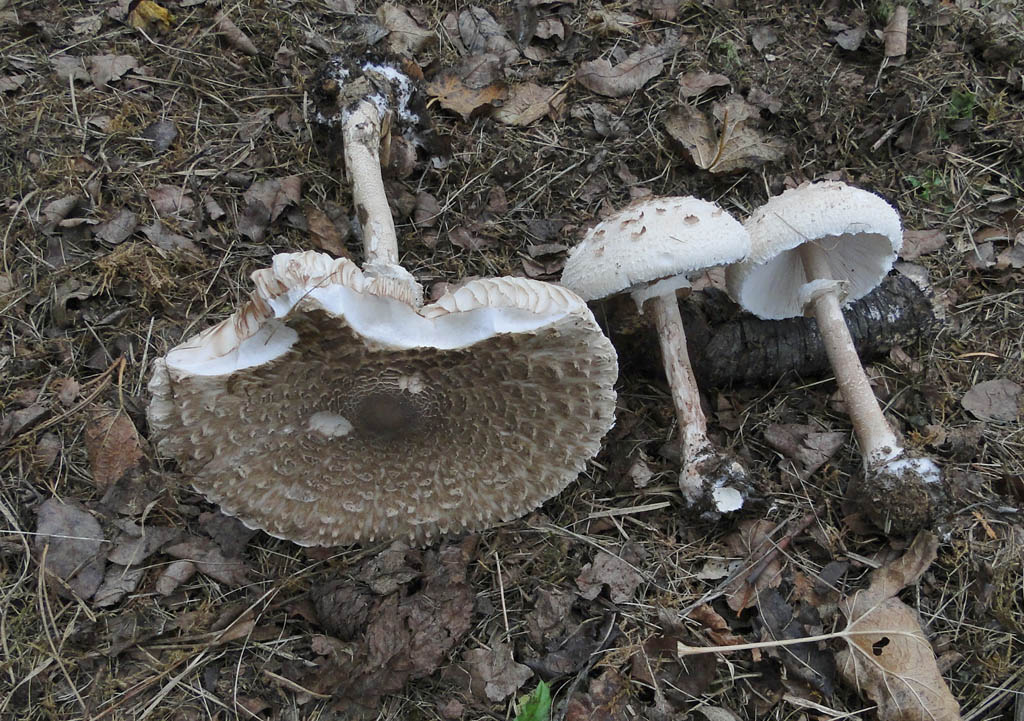 Ob der große Pilz jetzt wirklich M procera ist, oder schon wieder eine Varietät wegen der starken Hutschuppung, kann ich jetzt nicht mit Sicherheit sagen. Eigentlich geht es mir auch eher um die Beschreibung von M. konradii.