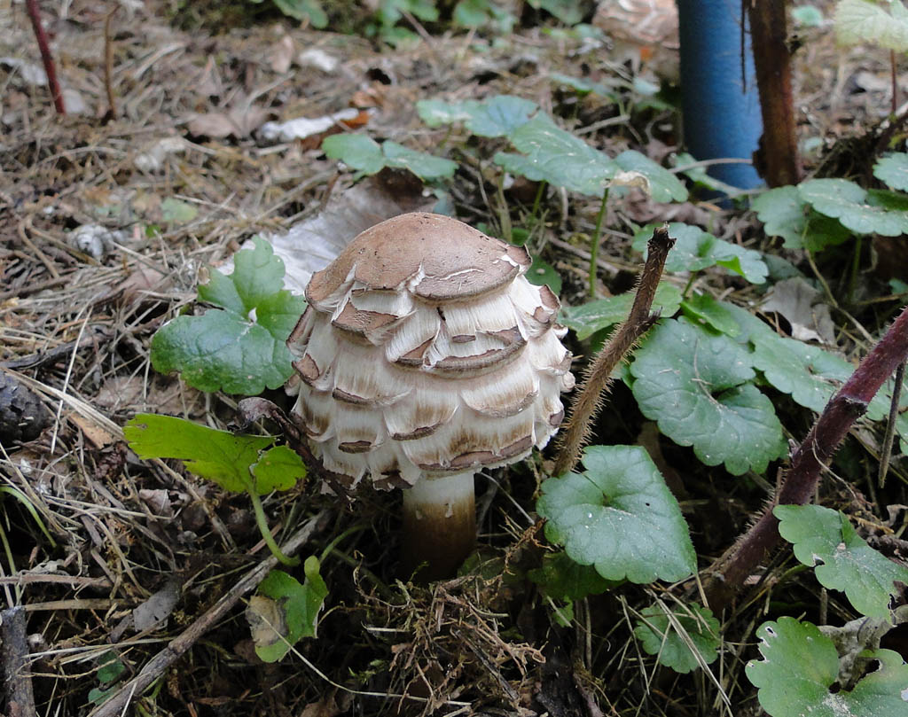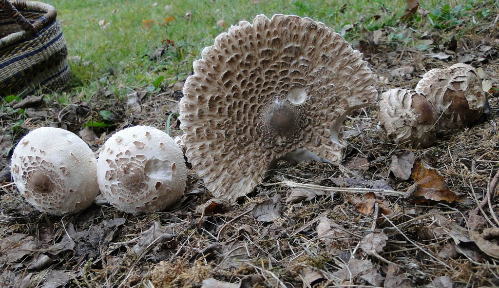 Da bei mir im Garten Safranschirmlinge wachsen, habe ich sie zum Vergleich auch noch dazu gelegt. Es ist Macrolepiota rhacodes var. bohemica laut "Großpilze B-Ws", die heute wohl Chlorophyllum brunneum heißt.