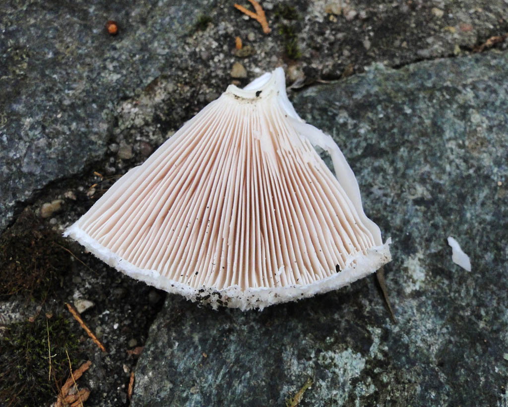 Das ist die Aufsicht in die Lamellen, die bei M. konradii auch einen rosa Schimmer haben, das Sporenpulver ist aber cremefarben.