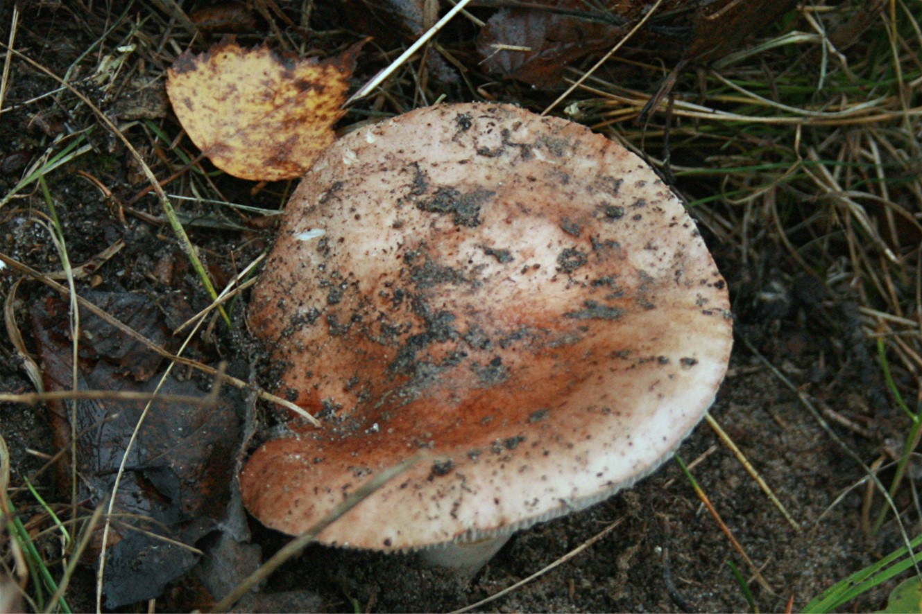 Hier noch ein Bild (Hut von oben, Dm ca.11 cm) von dem Fk, der immer noch in der Böschung steht. Ich musste ihn erst ausgraben unter sandiger Erde und Laub, deswegen ist die Hutfarbe recht blass und unregelmäßig. Grüße - Rika : Hallo Rika, : ich lege mich mal anhand deiner Bilder auf Tricholoma pessundatum fest.
