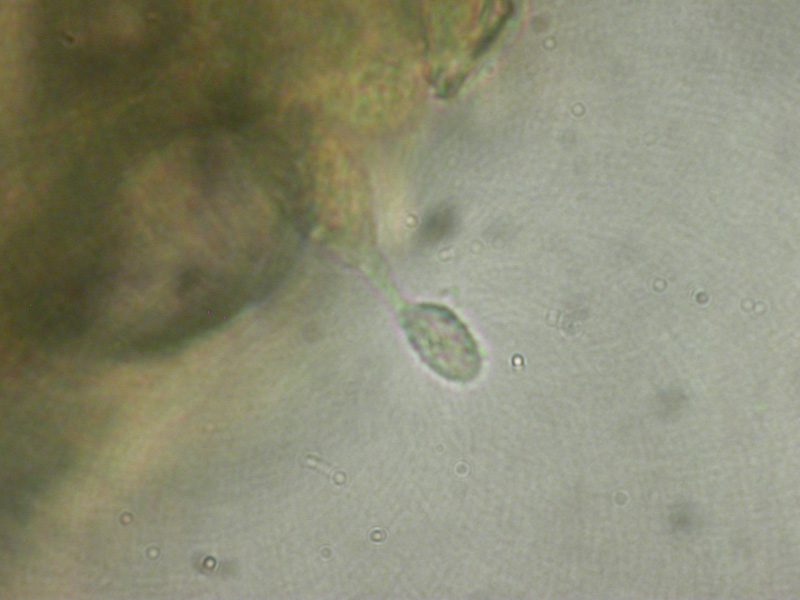 Für mich sieht das wie eine Basidie mit einzelner Spore aus.