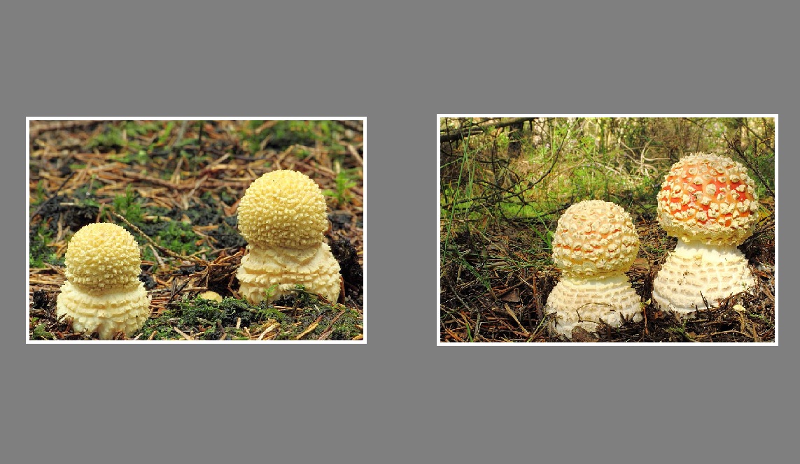 In manchen Büchern, z. B. Großpilze BaWü, wird auf einen morphologischen Unterschied hingewiesen, den man so nicht anwenden kann. Beim Übergang von Knolle zum Stiel soll A. reagalis flockig sein, A. musc. hingegen warzig (oder so ähnlich). Das dies nicht (immer) stimmt zeigt das Foto junger Exemplare,