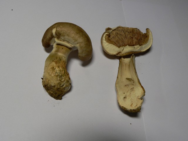 Hallo Andreas, um ehrlich zu sein: ich weiß nicht, was es ist. Aber ich denke, mit der Gattung hast du knapp daneben getippt. Es sollte wohl ein Leucoagaricus sein - aber welcher? Das Bild habe ich erst gestern gemacht, nach dem der Pilz schon drei/vier Tage rumlag und ich keine Zeit hatte. Leucothihes hatte ich aus irgend einem Grund verworfen. Der Habitus passte mir gar nicht. Waren richtig robuste Exemplare. Und dann hat Pilze der Schweiz hier auch seine Grenzen. Vielleicht ist es auch subcretaceus. Verfärben tat er sich nicht. Standort: im Nachbarort im Rindenmulch unter einer Buchenhecke. Die Verfärbung am Stiel halte ich für Standortbedingt, bei mir hat sich nichts mehr verfärbt.