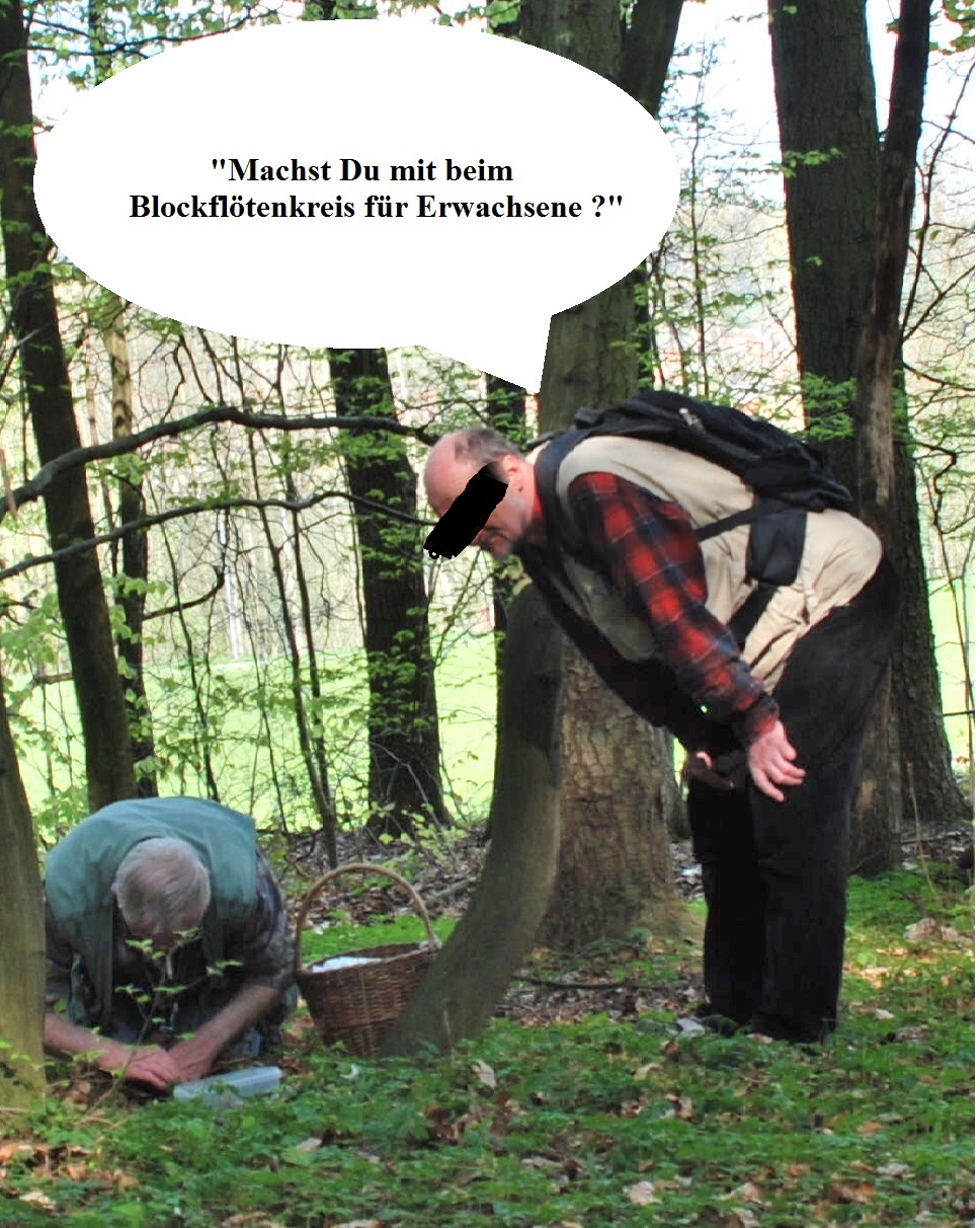 leider kann ich mit solchen Fotos kaum dienen. Wenn 'mal einer geknipst hat sind die Fotos dann verschwunden, normale Touristen trauen sich wahrscheinlich nicht (wegen der evtl. Unzurechnungsfähigkeit) und meine häufigeren Exkursionsbegleiter haben's nicht so mit dem Fotografieren. Beim Verfassungsschutz brauchst Du auch nicht nachzufragen, die haben es nicht so mit dem braunen Zeugs. Bei der Suche nach kleinerem Substrat sieht das so aus wie auf dem Foto. Meinem Begleiter habe ich wegen der Geheimdienste die Augen geschwärzt und seine ketzerischen Gedanken mit einer falschen Fährte überdeckt.