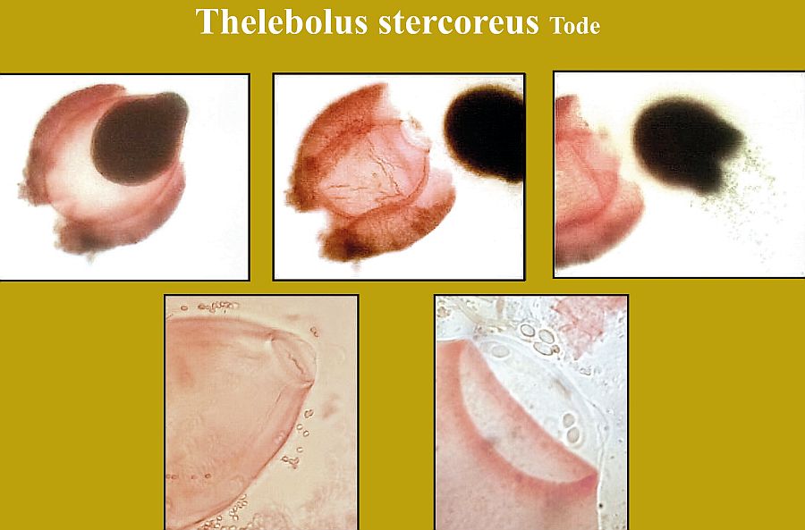 Dein erstes Foto ist wahrscheinlich eine Cheilymenia, Lotte hat recht mit Pilobolus und der "Staubsaugerbeutel" ist der Ascus von Thelebolus stercoreus.