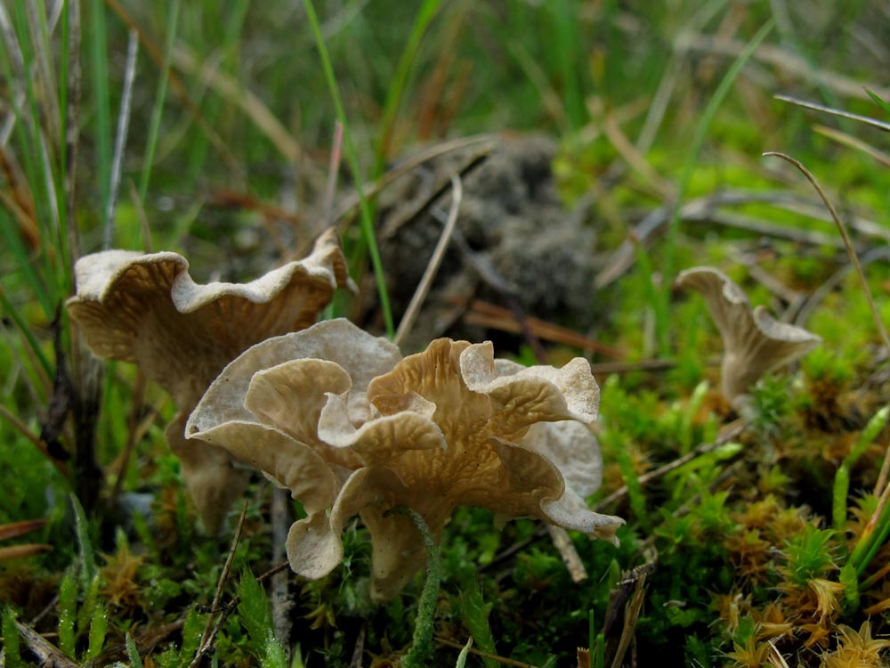 Das könnte der Gezonte Adernmoosling Arrhenia cf spathulata sein. Habe keinen Beleg mitgenommen. Vielleicht Harzpilzchen? Den Abschluß in Gommern machte ein Leucoagaricus den wir uns nicht näher anschauten.