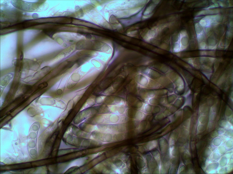 besteht nur aus septierten Hyphen und Sporen, keine Basidien und auch keine Ascoschläuche zu entdecken.