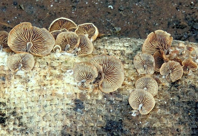 Das erste Mal habe ich die Art am Rennsteig gefunden an Fagus, untypisch die Höhenlage meint auch Lothar. Michael Vogel hat mir dann aus seinem Garten auf einem alten Jutesack einen Pilz gezeigt, der Pi x Daumen als Melanotus "textilis" bestimmt wurde und flugs mit Erwerb von Bd.1 Pilzkompendium sich als "horizontalis" erwies. Interessant war, daß dieser Pilz in früherer Zeit aus Amerika mit dem Schiffsverkehr eingeschleppt worden sei. Sicher aber gelangten Sporen und Jute aus Europa im Bauch der Schiffe über den Atlantik, und auf der Rückpassage waren die Bedingungen für die Fruchtkörperbildung gegeben und flugs kam die Art aus der "Neuen Welt". LUDWIG