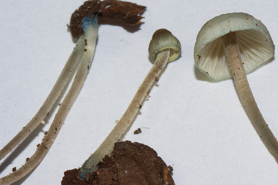 Bei denen fluche ich noch immer, dass ich sie zwischen den Jahren im Vorbeigehen aus dem Rindenmulch gepflückt und kein anständiges Bild habe. Die waren richtig hübsch mit ihren blauen Füßen, dem blaugrünen Hutrand und teilweise ebenso gefärbten Lamellenschneiden. 100% sicher bin ich mit Geschmückter Helmling - Mycena amicta nicht, aber was sonst?