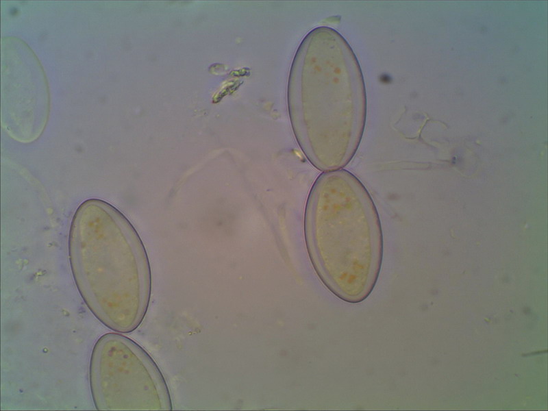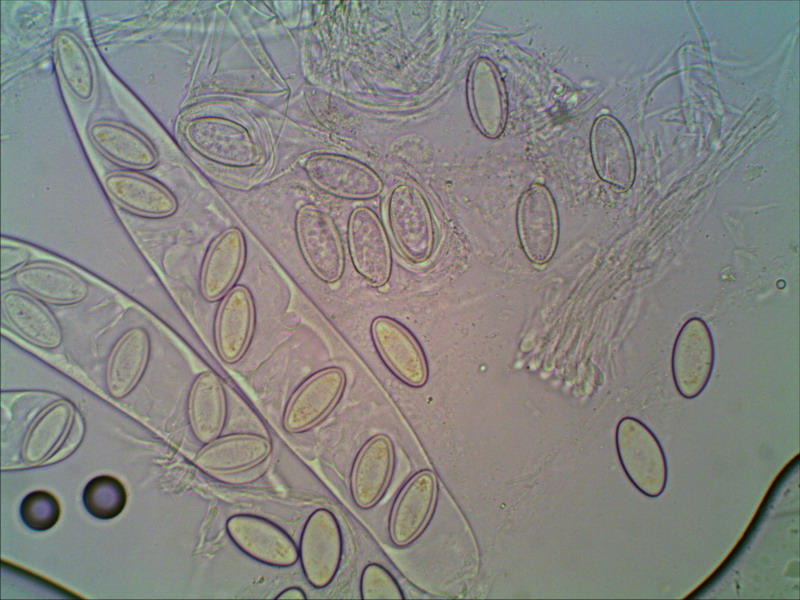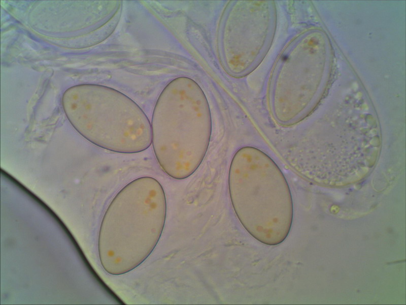 Hier habe ich eine Vermutung, das es sich um eine Coprotus Art handelt. Vielleicht sind die Flecken auf der Sporenwand arteigen. Die ermittelte Sporengröße ist 27.7-28.1-28.5 x 15.7-16.2-16.6, das Substrat ist Schafdung.