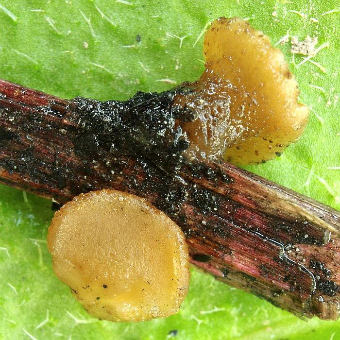 Peziza- Bestimmung ist nervtötend und oft von Mißerfolg gekrönt. Man muß sich da schon mächtig durch die Literatur wühlen. Diese kleine Art, die fast gestielt wirkt, wuchs auf Holzschredder und ist wohl ziemlich selten.