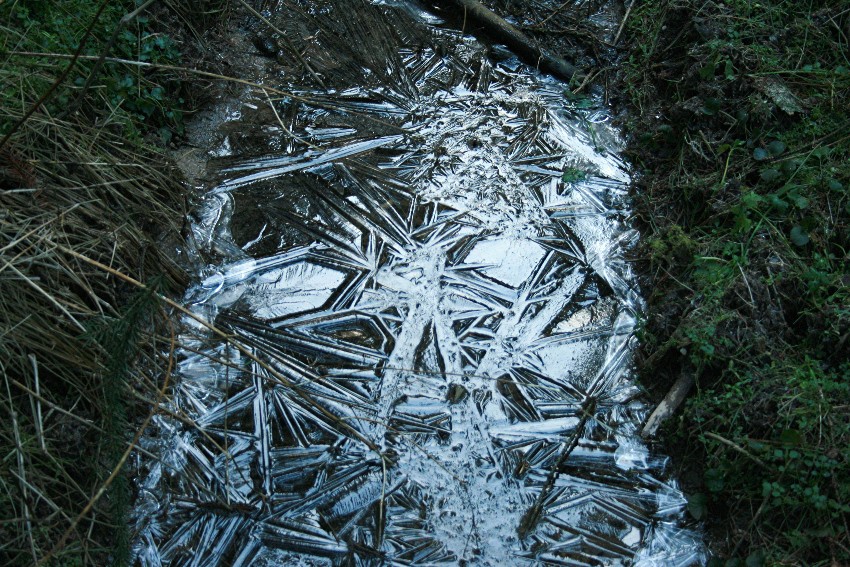 Haareis konnte ich leider nicht finden. Aber diese fantastischen Riesen-Eiskristalle haben mich entschädigt.