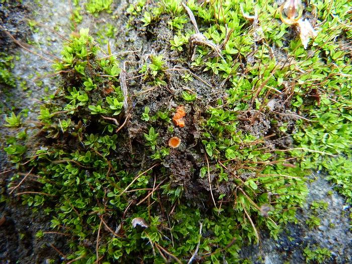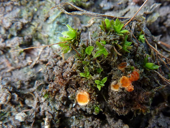 Lamprospora cf. dictydiola Boud. am Moos Tortula muralis.