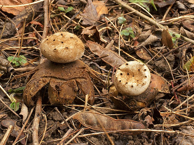 Liebe Leute, diesen hübschen nicht eben häufigen Pilz haben Bernd und ich gestern gefunden: Myriostoma coliforme, auf Deutsch heißt er Sieberdstern, auf englisch aber viel hübscher: Pepperpot. Im Gebüsch unter Robinie.