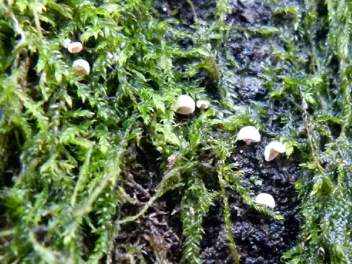 Jetzt hätte ich mich makroskopisch mit Rimbachia bryophila anfreunden können, aber die hat weisses Spp. Der einzige cyphelloide Pilz (oder bin ich da ganz verkehrt?) den ich gefunden habe mit zimtbraunen Sporen ist Episphaeria fraxinicola und der hat wesentlich kleinere Sporen. Was kann es sein??? Gruß