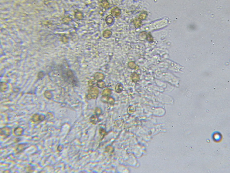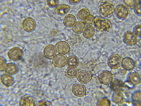 Im Mikroskop sahen die Sporen globos und dickwandig aus mit 8-10µm Durchmesser.