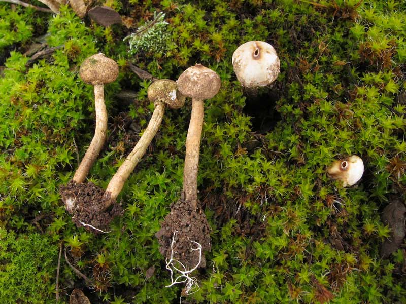 ... der Zitzen-Stielbovist Tulostoma brumale gefolgt vom ...