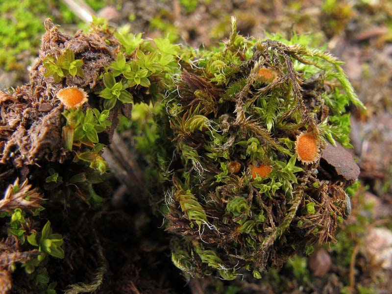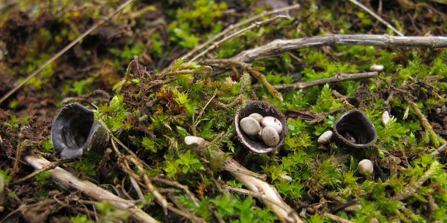... Topf-Teuerling Cyathus olla. Die Peridiolen waren bis zu 10cm weit aus den Töpfen geschleudert. Den Mittleren hab ich fürs Foto mit eingepflanz. Der stand geschützt unter einem Moospolster und war noch voll bestückt. Der Standort der Drei war ein abgegrabener Südhang neben einer Umgehungsstraße den ich mir schon lange mal anschauen wollte.