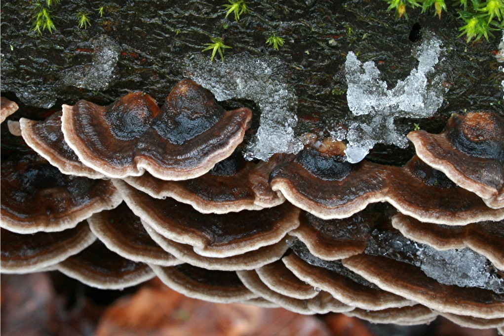 Hier mal zur Abwechslung in der "Wildnis" frischgewachsene Pilze: Am vergangenen Samstag - bevor die große Kälte kam - fand ich diesen Porling an einem liegenden Buchenstamm. Durchmesser der Fk ca. 4 cm, den "Rest" seht Ihr auf den Fotos.