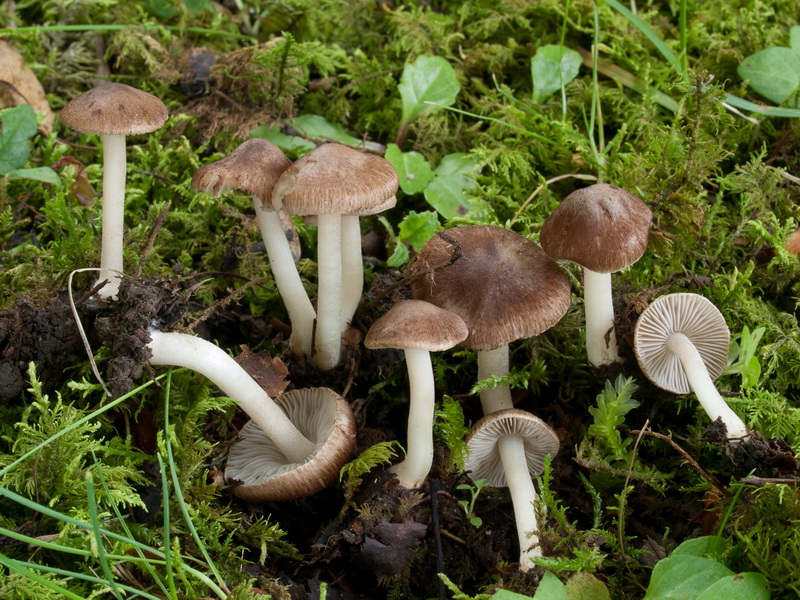 Servus zusammen, es wird wieder einmal Zeit für ein paar Risspilze. Schon ein paar Jahre lang habe ich gerätselt, was Inocybe splendens var. phaeoleuca eigentlich sein soll. In der vergangenen Saison habe ich endlich zwei Kollektionen gefunden, von denen ich glaube, dass sie diese Kühnersche Art darstellen. Eine Aufsammlung stammt aus einem Park, die zweite aus einem Laubmischwald, jeweils bei Hainbuche (und Linde). Meine Frage an die Risspilzfreunde: Kenn ihr diese Art auch so und was haltet ihr von der Eingemeindung unter I. splendens? Ich habe bislang zwei Kollektionen als I. splendens bestimmt und eine als I. terrifera, alle drei haben makroskopisch nicht die geringste Ähnlichkeit mit I. phaeoleuca, aber bislang fehlt mit dazu der Überblick. Inocybe splendens var. phaeoleuca (Kühn.) Kuyper aus einem Münchner Park bei Hainbuche und Linde: Steckbrief: ziemlich zierliche, glattsporige Marginata mit weißem, zum dunkelbraunen Hut stark kontrastierenden Stiel und höchstens ungerandet kleinknolliger Stielbasis.