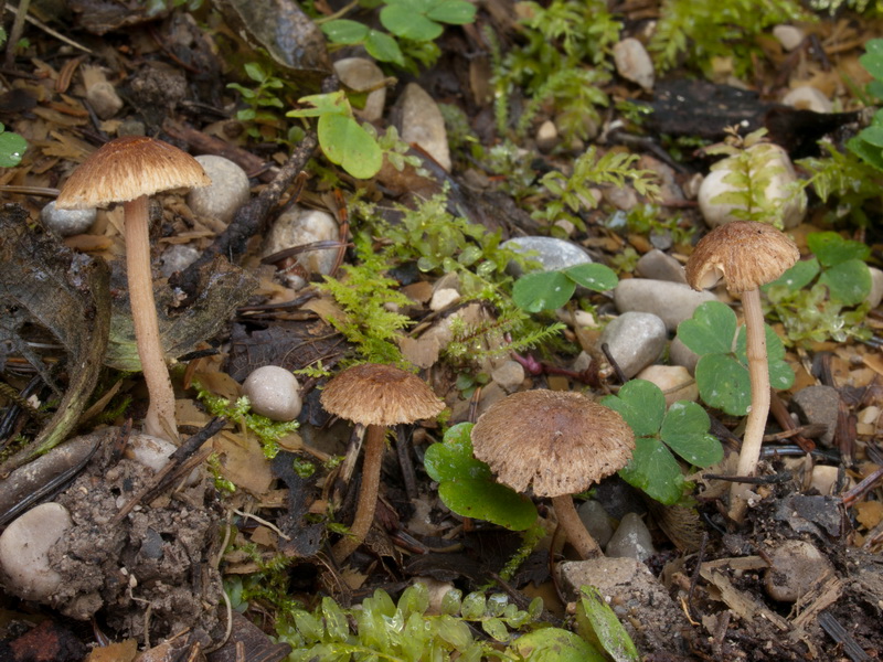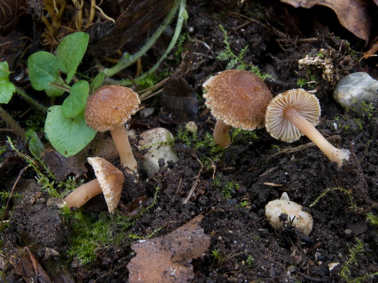 Hallo zusammen, als nächstes möchte ich Kollektionen von Inocybe muricellata Bres. vorstellen und zwar im Sinne von Stangl. E. Ferrari (2006) weist darauf hin, dass diese Art nicht mit rötlicher Stielspitze beschrieben wurde. Wenn man die Synonymisierung durch Kuyper also ablehnt, müsste man die Pilze wohl I. scabella nennen. Steckbrief: Glattsporige Marginata mit ziemlich schuppigem Hut, gleichdickem Stiel, rötlicher Stielspitze, gedrungenen Sporen und langhalsig lageniformen, in KOH gelben Hymenialzystiden Bis vor kurzem war mir nicht so recht klar, was ich unter diesem Pilz zu verstehen habe, aber inzwischen habe ich drei Kollektionen, die gut zusammenpassen. Frage an die Risspilzfreunde: Deckt sich diese Interpretation mit eurer? Interessant wäre außerdem, ob das Merkmal der gedrungen Sporen bei dieser Art konstant ist, bei meinen drei Kollektionen ist der Q-Wert stets <1,6. Inocybe muricellata Bres. (Gelbbrauner Schüppchen-Risspilz) aus einem Tannenmischwald, bei großen Tannen und Jungbuchen an der Böschung: