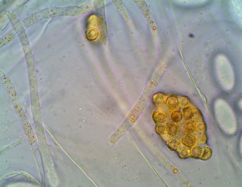 Bei der Begutachtung eines Kuddelascos entdeckte ich Sporen, die einen Bauchpilz ähneln, wieder mal nicht richtig alles gesäubert, war mein erster Gedanke. Doch dann das hier: die scheinen ja in einem Schlauch zu stecken? Weiß jemand Raz? LG Hartmut