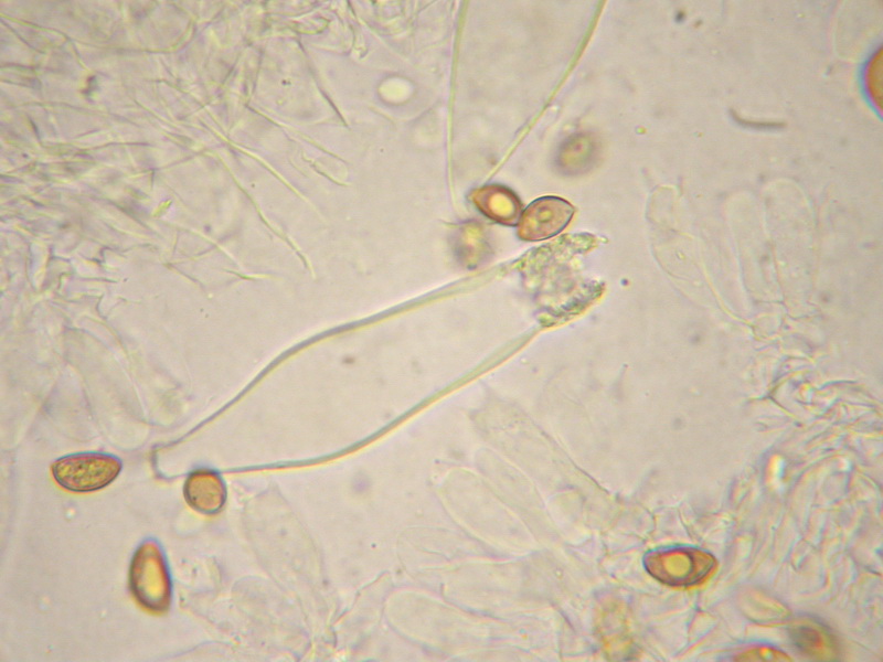 Sporen: amygdaloid, in der Regel ohne Depression, Apex meist subkonisch und fast spitz, Maße: 9,9 x 5,7 (8,5-11 x 5-6,5), Q=1,74 (1,54-1,91):