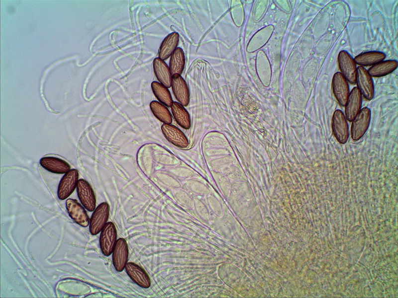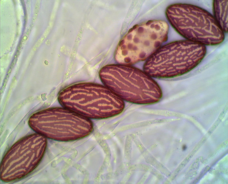 Kann man diesen Winzling noch als Ascobolus albidus ansprechen? Ich habe einige Zweifel wegen den leicht spindeligen Sporen und teilweise fast netigen Ornament. Durchmesser 0,6mm x Höhe 0,4mm, also ein Winzling. Für Hilfe bin ich sehr dankbar.