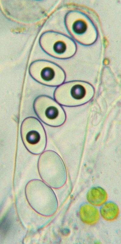 Ein Ascus von Coprotus ochraceus (nach meinen Beobachtungen eine Frühlingsart, die nun bald wieder entdeckt werden kann).