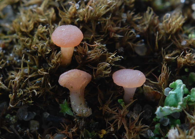 Herzlichen Glückwunsch, mehr blieb mir nicht zu sagen. Aber aus der Ferne?? Nein ohne einen Blick durch das scharfe Glas geht nichts. Heute hatte ich nun einen kleinen Teil der Kollektion auf dem Tisch und dann unter dem Mikroskop. Alles passt sehr gut zur Art, an deren Beschreibung im Team ich ja selbst mitwirken durfte. Also der 3. Fund dieser Art für Deutschland, die bislang ein atlantisches Verbreitungsmuster zeigt und mit ziemlicher Sicherheit an dem häufigen Moos Ceratodon purpureus parasitiert. Für diejenigen die nun sofort losziehen noch ein paar Fakten aus dem vitalen „Steckbrief“ von Roseodiscus formosus: Makrosopische Merkale: