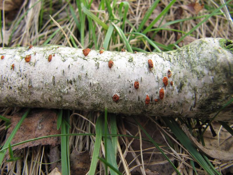 Hallo, ich bin ja nun durch Nobis "10 Birkenpilze" schon genug verunsichert was die Art angeht. ;-) Offenbar gehören aber die breiten nicht rotbraunen Stromata dazu. Heute habe ich aber diese orangeroten Exemplare gefunden. Sie enthalten nur Konidien mit 5-12,5x1,3 µm. Ist das die Nebenfruchtform von D. favacea? Ich habe nirgends Hinweise dazu gefunden, geschweige denn wie sie aussieht. Viele Grüße