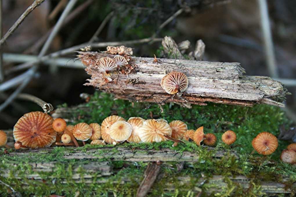 Hallo miteinander! nun hoffe ich wenigstens einen (für mich neuen) Pilz richtig bestimmt zu haben: Xeromphalina campanella auf morschem Fichtenstamm. Die helleren Exemplare in der Mitte waren von dem Holzstück überdeckt, das im Foto "oben" liegt und die Fk von unten zeigt. Erstaunlich finde ich diese stark radial gestreifte Hutoberseite, die im Gerhardt nicht beschrieben wird. Bei verschiedenen Foto im Web sind manche einfarbig, andere "gestreift". Ist das schon EINE Art? Grüße - Rika