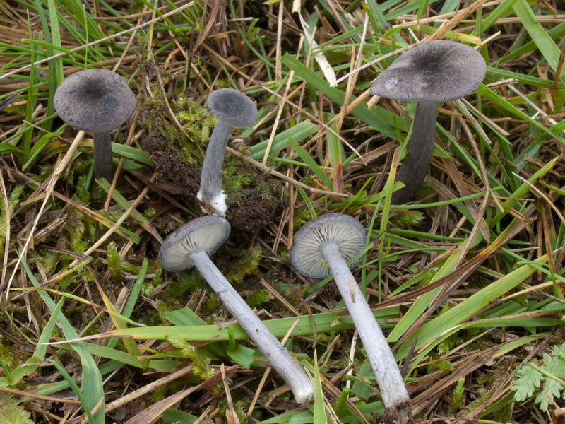 Zur Bestimmung: Mit Gröger und FE5a geschlüsselt; das in Gröger und FE5a angegebene Merkmal der jung bräunlichen Lamellen entspricht nicht der Originalbeschreibung (albae! Moser: Lamellen lange weiß); es passen alle Merkmale, nur das Röten konnte ich nicht beobachten. Es kann nach Ludwig bzw. Stridvall aber auch ausbleiben. Funddaten: 20.09.2011; MTB 7735-4-3-1, 490 m; D - By - München, Fröttmaninger Heide (Magerwiese auf Kalkschotter, von Schafen beweidet), auf der Wiese an langgrasiger Stelle; gesellig (5 Fk); Nr. 5: Entoloma cf. atrocoeruleum Noordel. (Schwarzblauer Zärtling)