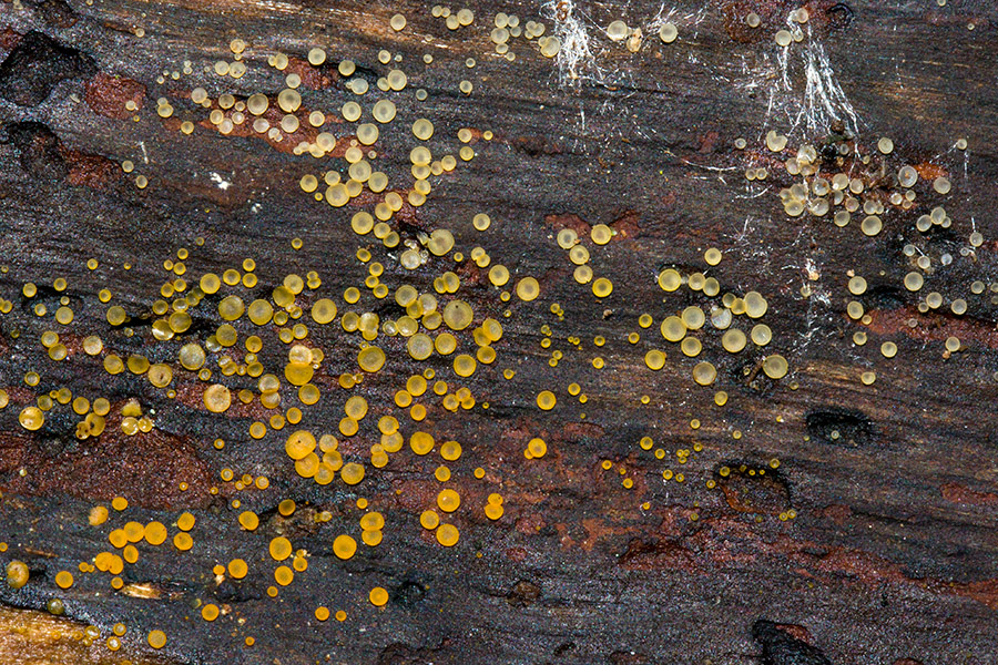 An etwas übersichtlicheren Stellen konnte man kleine Pilzchen finden, hier vermutlich (nicht näher angeschaut) Hyalorbilia inflatula.